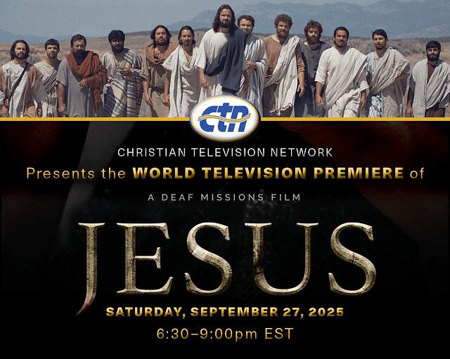 Gather your family and friends on Saturday, September 27 for an epic movie night. For the first time ever, JESUS: a Deaf Missions Film will be televised on the Christian Television Network (CTN)!