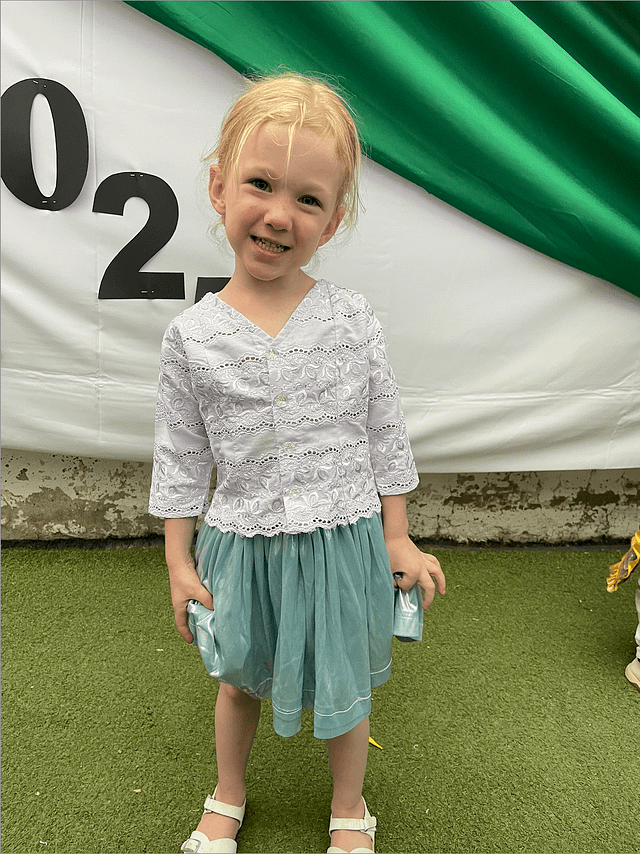 Olive is almost done with pre-K-3 and loves dancing and dressing like a Cholita
